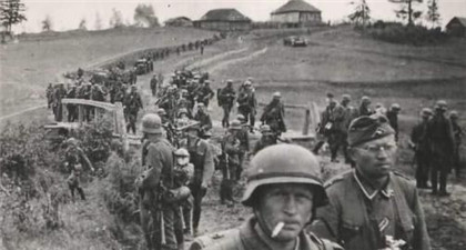 1941年6月22日,纳粹德国撕毁《苏德互不侵犯条约》(《莫洛托夫—里宾特洛甫条约》),伙同仆从国匈牙利、罗马尼亚、芬兰以事先拟订好的一份代号为“巴巴罗萨”的计划,集结了190个师550万人、4900架飞机、3700辆坦克、47000门大炮、190艘军舰,划分为三个集团军群,从北方、中央、南方三个方向以闪击战的方式对苏联发动突然袭击,苏联卫国战争全面爆发。