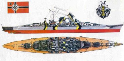 而俾斯麦战列舰数据就比大和差远了,主炮380mm,装甲设计比较落后,但是德国的钢材质量听说很好。俾斯麦第一次执行任务就将英国海军骄傲、世界最大战列巡洋舰胡德号击沉了,关键是他还吸引了英国四十多条军舰围攻他,被发现后激战了整整两天半,最后打得俾斯麦所有的主炮都被炸没了,实在没办法了,选择了悲壮的死法:自沉。