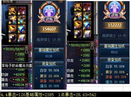 3、基础属性加成计算(楼主有两个暗地,为了有误差,所有分别作了测试)