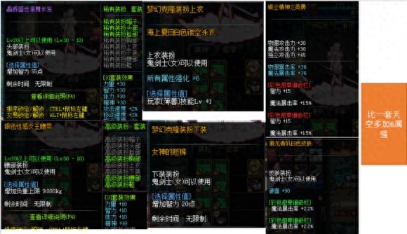 改版后:幽魂一套增加105智力,5魔爆,+12武器增加337魔攻。
