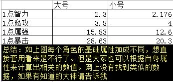 可以大致得出结论:魔攻低的情况下其他属性的加成比例也不高。所以单单对于提升战力来讲,小号以提升魔攻为主。