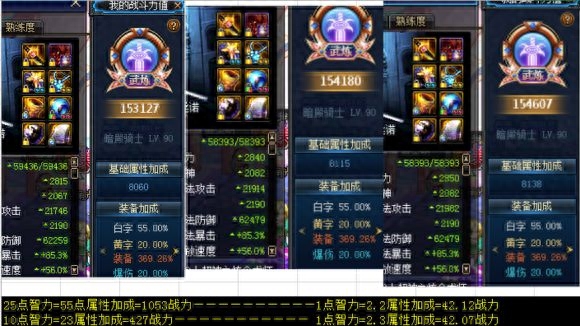 根据上面的战力计算公式,以及没点属性提升的基础属性加成就很容易回答一楼提示的问题: