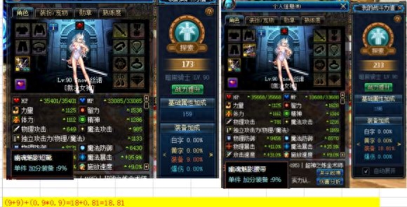 升级荒古还需要两个星期,不过大致计算一下,升级的荒古基础多80+强化12多30物攻,装备加分成算1.15的情况下。圣耀加幽魂比荒古加超大陆要高1.5w 左右的战力。而且不出我预料,90b的战力都没有幽魂高