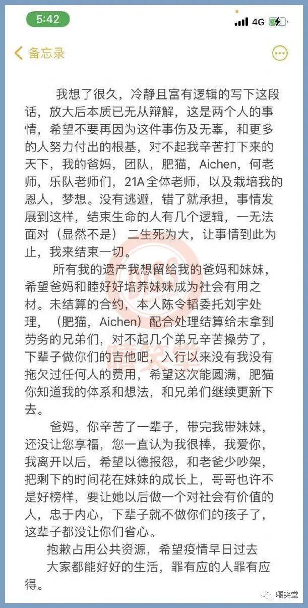 说实话,陈令韬公开发遗书这个行为,本身就十分离谱。