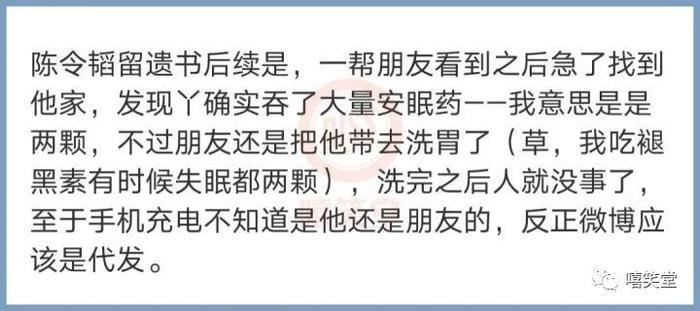而现在网上已经爆出了陈令韬写遗书的后续。