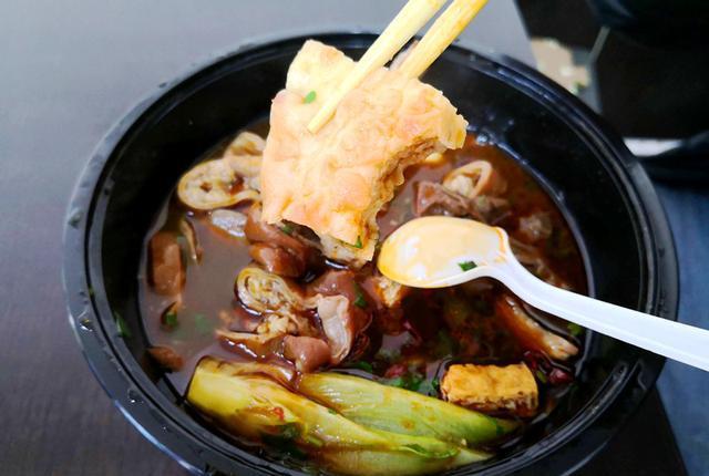 卤煮火烧里有些什么呢?有猪大肠,猪小肠,猪肺,还有炸豆腐干,当然也有蔬菜。