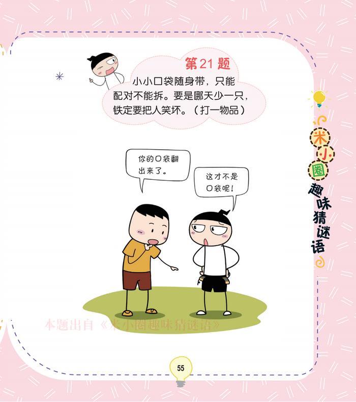 【动脑】小小口袋随身带,只能配对不能拆。要是哪天少一只,铁定要把人笑坏。(打一物品)