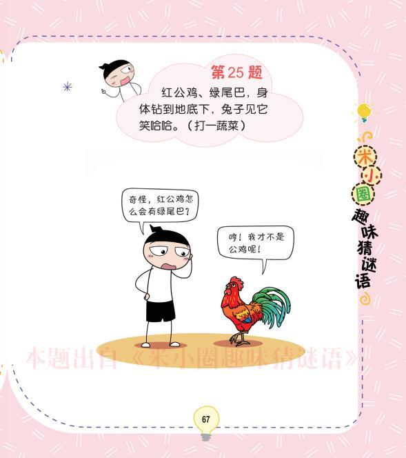 【动脑】红公鸡,绿尾巴,身体钻到地底下,兔子见它笑哈哈。(打一蔬菜)