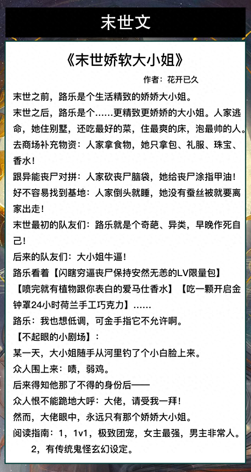 第二本《末世娇软大小姐》作者:花开已久