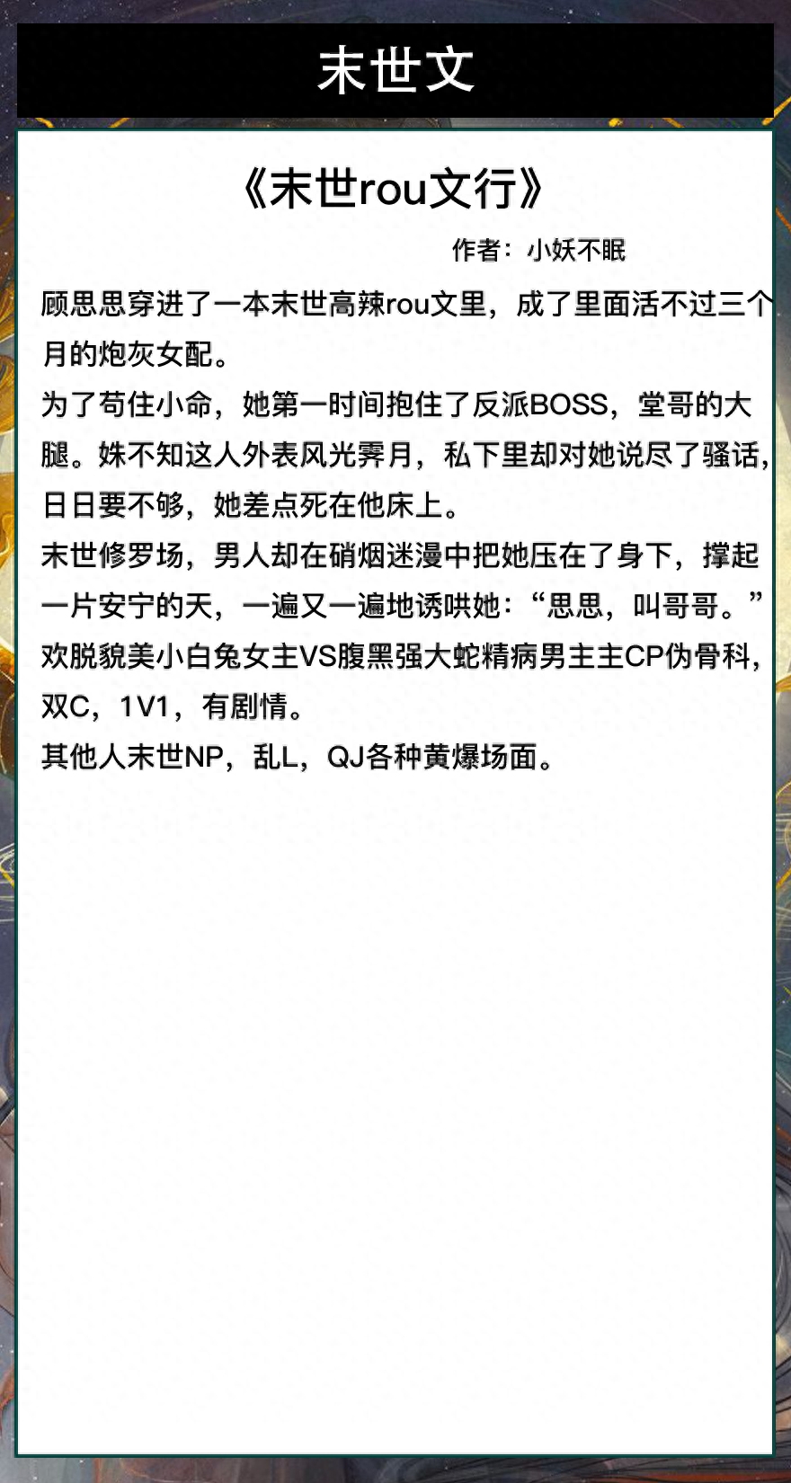 第六本《末世rou文行》作者:小妖不眠
