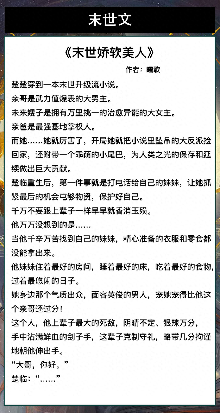 第三本《末世娇软美人》作者:曙歌