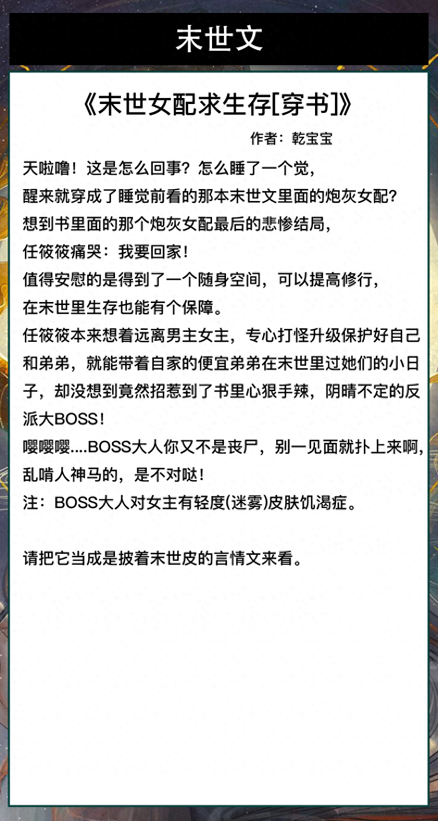 第四本《末世女配求生存[穿书]》作者:乾宝宝