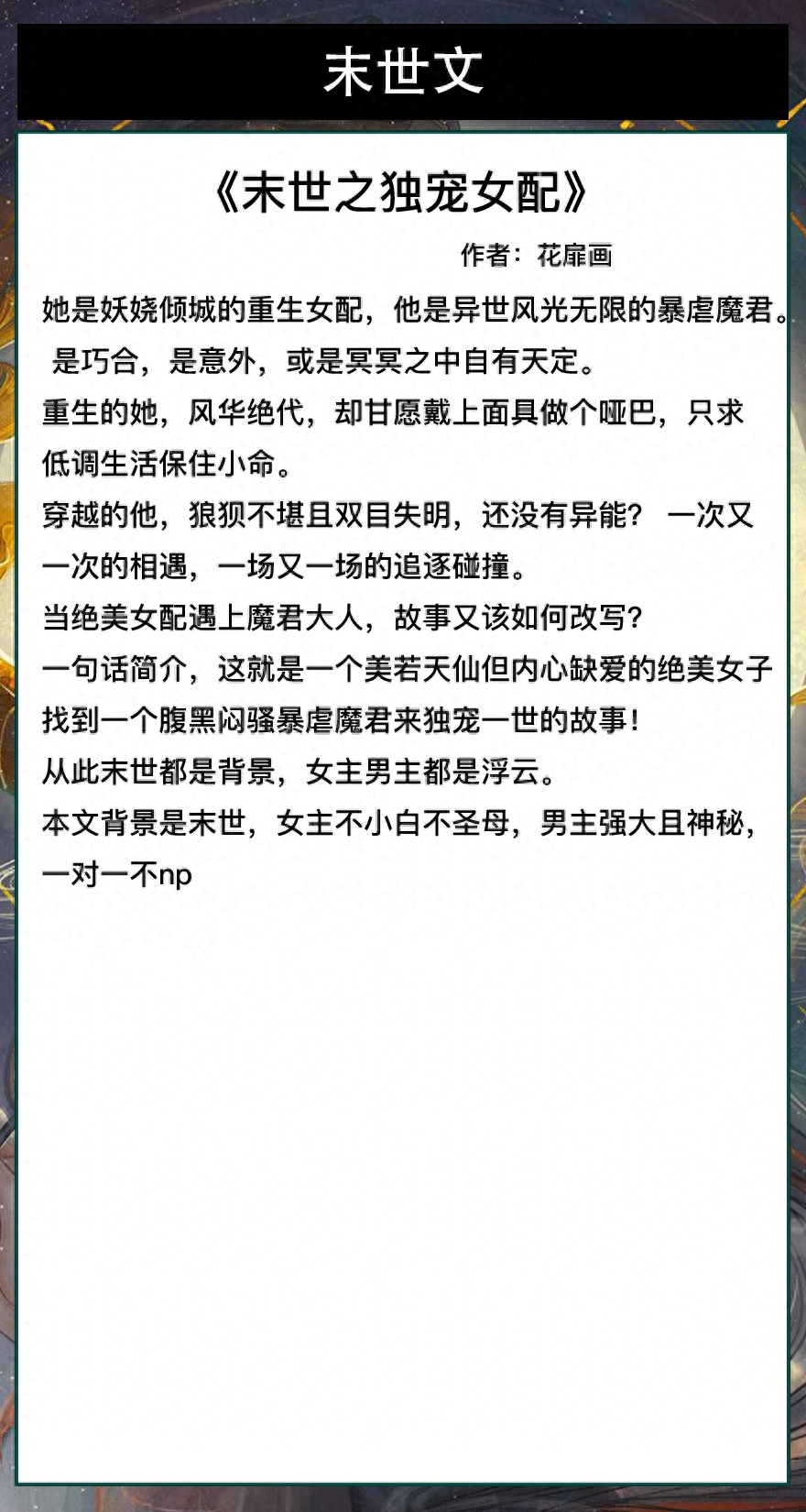 第一本《末世之独宠女配》作者:花扉画