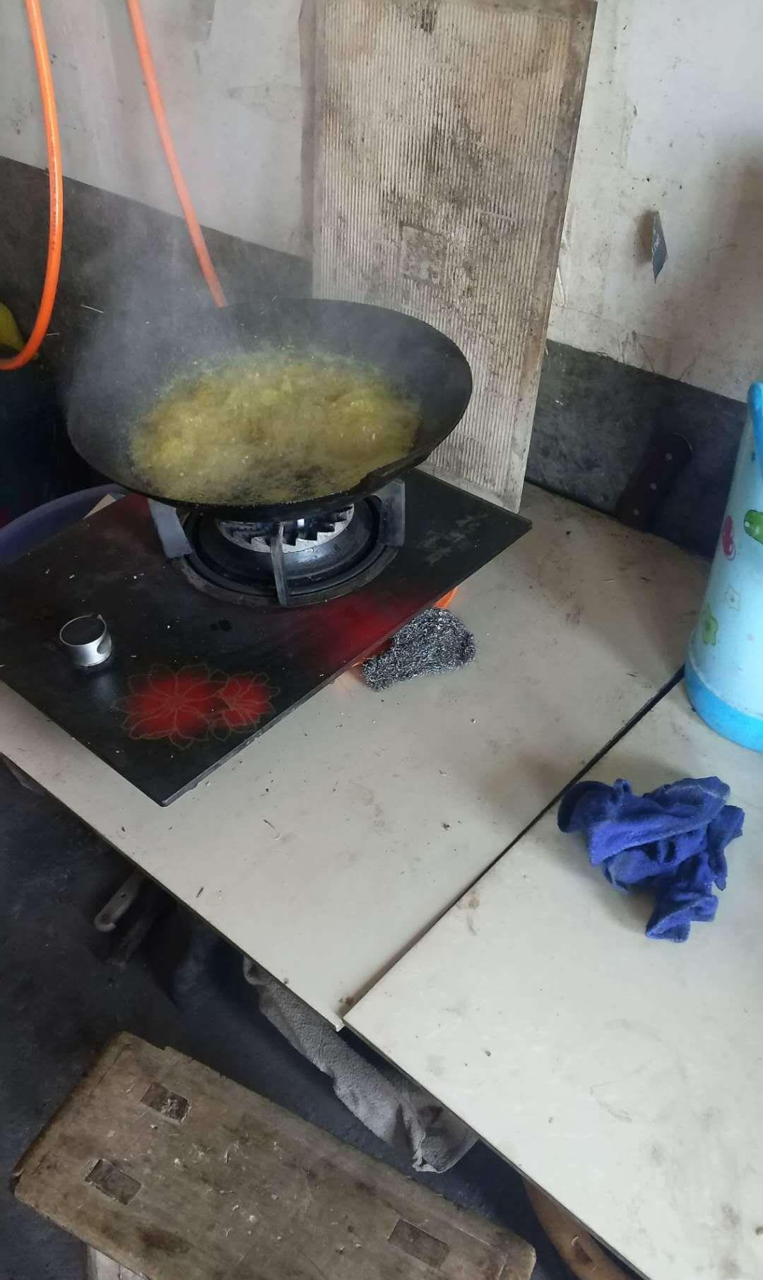 木姜油的制作过程,不加其他配料,纯木姜油,清水泡30分钟清洗干净。把适量的植物油到锅里烧好。
