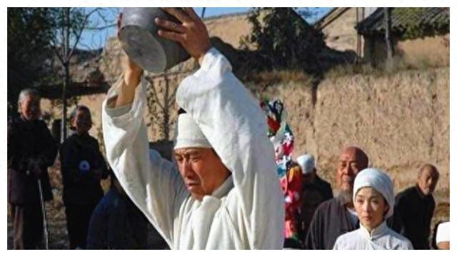 (4)驾丧摔盆。驾丧就是扶棺走丧,摔盆就是摔丧盆。