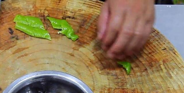 第十一步锅里面再次烧水,把青红椒和木耳放到锅里面,焯水二十秒左右,就可以倒出,沥干水分备用!