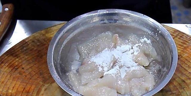 第六步再加上少量的淀粉,然后接着用手搅拌均匀,加淀粉是为了防止鱼肉的水分流失,搅匀之后腌制五分钟!