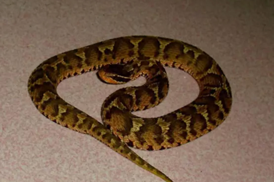 如何区分短尾蝮和其他毒蛇呢?短尾蝮的身体要比一般的毒蛇粗很多,但是比较短小,虽然花纹和圆斑蝰有些相似,但是还是有一定的区别,可以注意花纹的图案,短尾蝮的头部和背部都呈现深棕色,在枕部的中央部分有一些浅褐色的桃形斑纹。头部是明显的“三角形”,并且头部会比颈部大上许多,尾部较为短小。