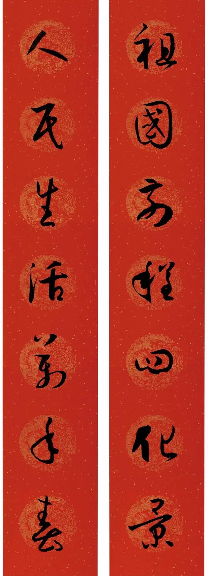 下联:春含画意绘新天