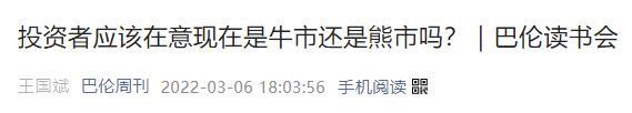 《投资者应该在意现在是牛市还是熊市吗?|巴伦读书会》