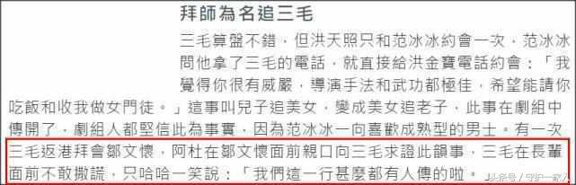 2008年11月,香港资深电影人杜惠东(已于2016年去世)在其专栏中撰写了《山东大妹钟情熟男》一文,揭开了范冰冰和洪金宝的一段往事。