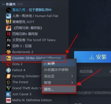 steam上的CSGO切换服务器需要在属性中设置,方法为: