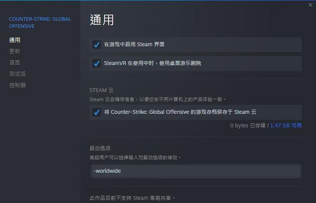 而要进入国际服也是在相同的地方——【启动选项】下面输入-worldwide即可。关掉窗口保存后进入游戏就是国际服了。