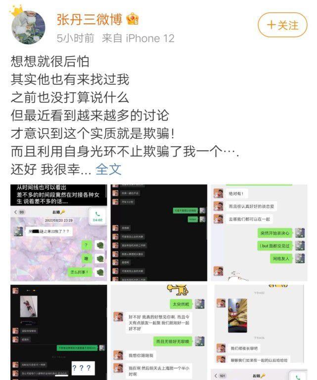 张丹三是女子团体SNH48的前期成员,7月19日,在都美竹爆料后,她也鼓起勇气晒出了吴亦凡撩她的聊天记录。