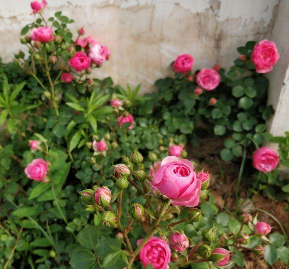 就是上图这种月季花,是一种小型藤本月季花,株型不是很大,可盆栽可地栽,是一款丰花性超级好的月季花,花朵很大很漂亮,像一朵绒球一样,超级美,单次花期可达10天左右,并且自洁性好,花开到后期,花瓣后自行脱落,留在枝头上的花朵,都娇艳耐看,而且枝条生长非常健壮,抗病性能好,对黑斑、白粉病都有良好的抗性。