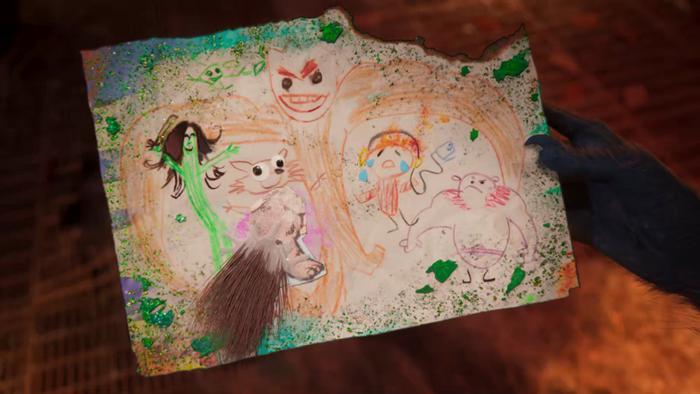 那幅画是格鲁特宝宝创作的五人全家福,致敬《银河护卫队》里大格鲁特为了保护大家牺牲自我时的画面。