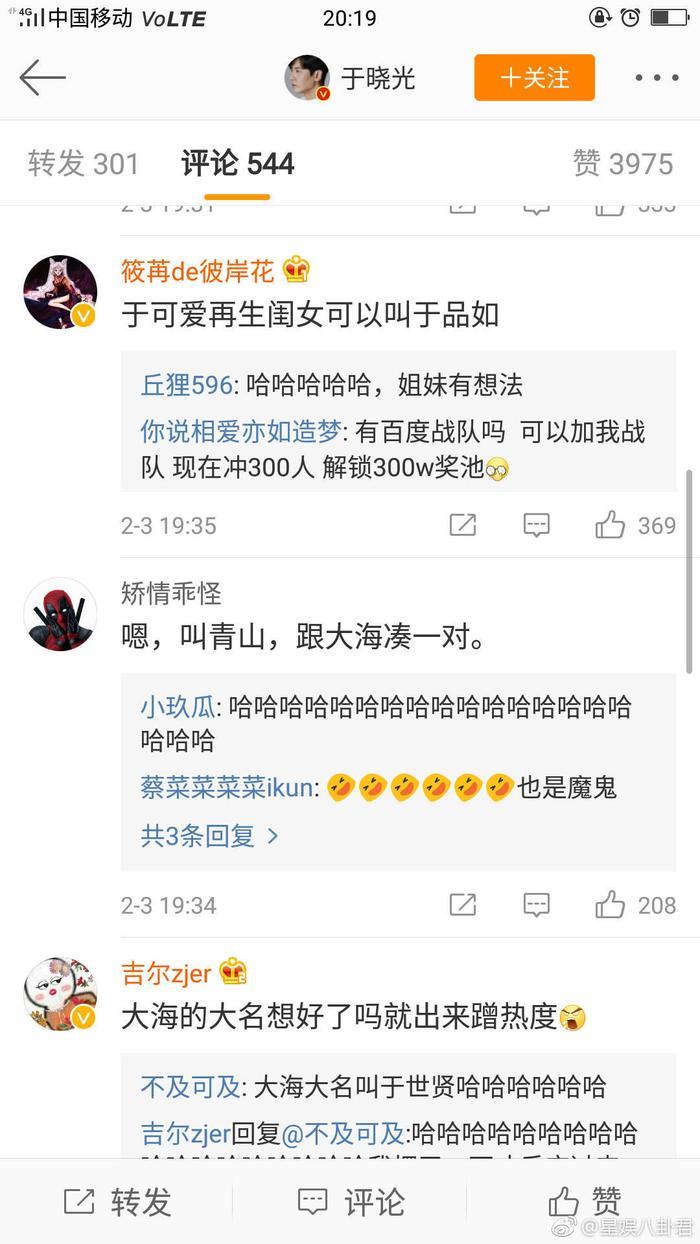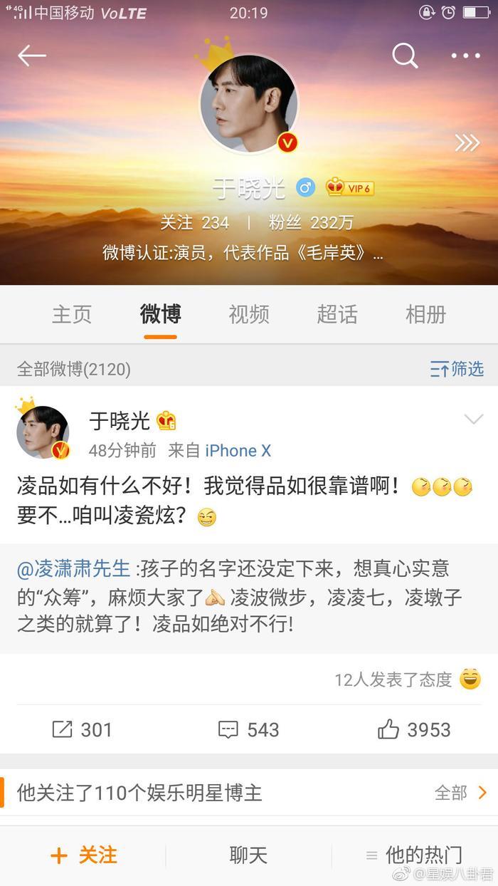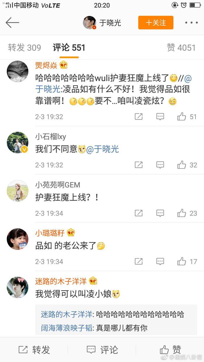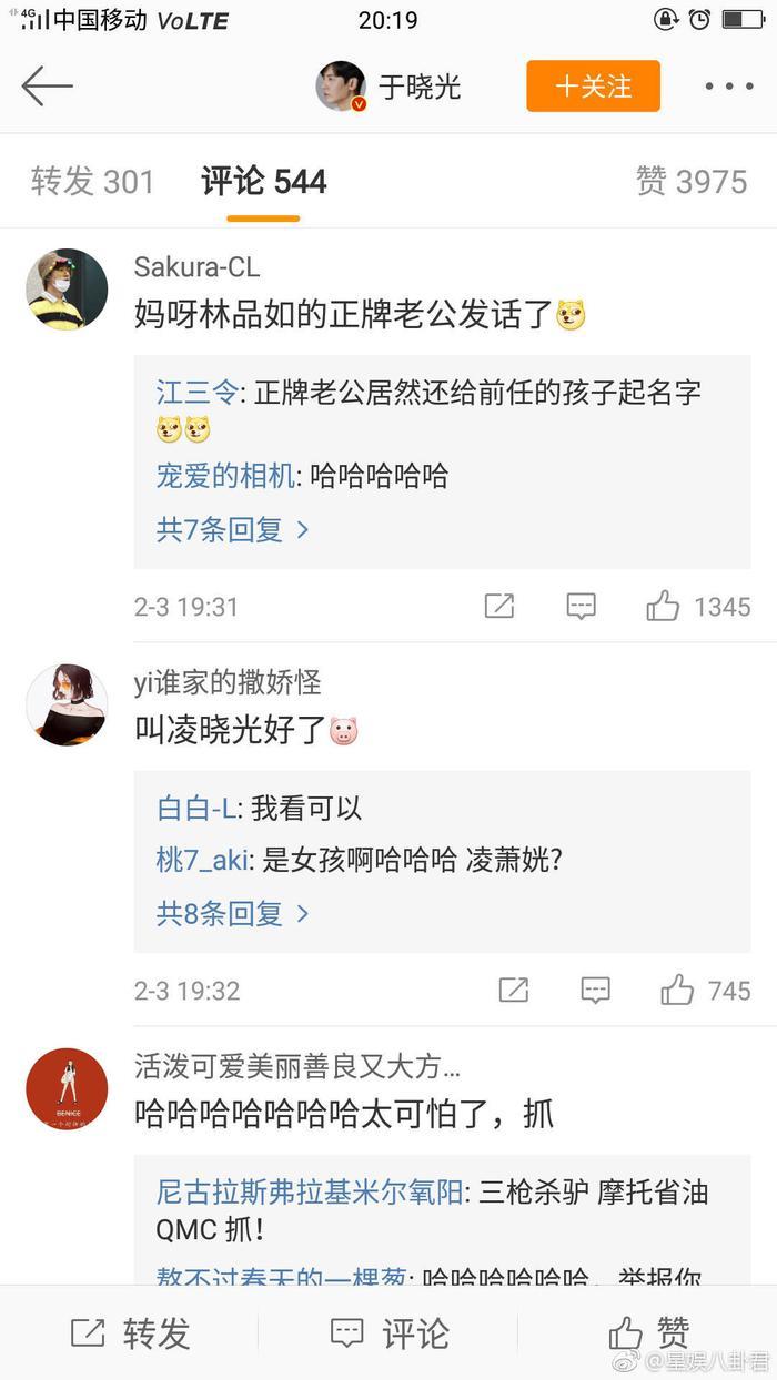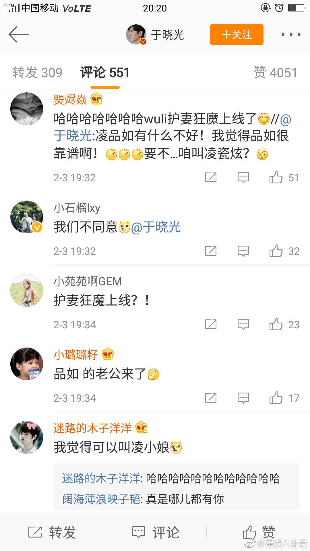 “林品如”正牌老公于晓光调侃凌潇肃(洪世贤)我看品如很靠谱,要不叫凌瓷炫哈哈哈哈哈哈,网友调侃两家可以结个娃娃亲了