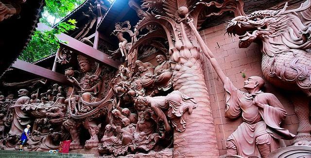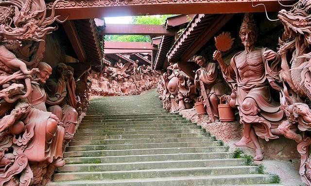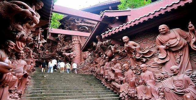 在绵阳圣水寺,拥有多个热门观赏景点其中最受游客欢迎的网点打卡点之一就是:罗汉佛墙。十八罗汉佛像依山而雕刻,各种菩萨和飞禽走兽伴随着各种佛像,无论是各种菩萨还是各种飞禽走兽都是雕刻的栩栩如生,形态各异达到了以假乱真的境界,在欣赏精美石雕佛像的同时油然而生的佩服艺术家的高超雕刻技艺。