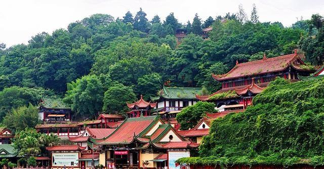 宏伟的佛教建筑群,整面山都是,红瓦的寺庙和白白的佛塔群。