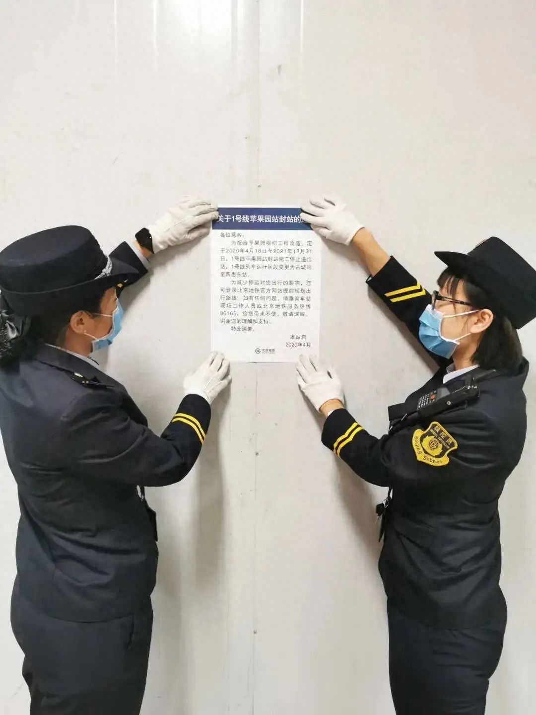 · 为配合苹果园综合交通枢纽施工,今日首班车起,北京地铁1号线苹果园站封站,所有乘客停止进出站。