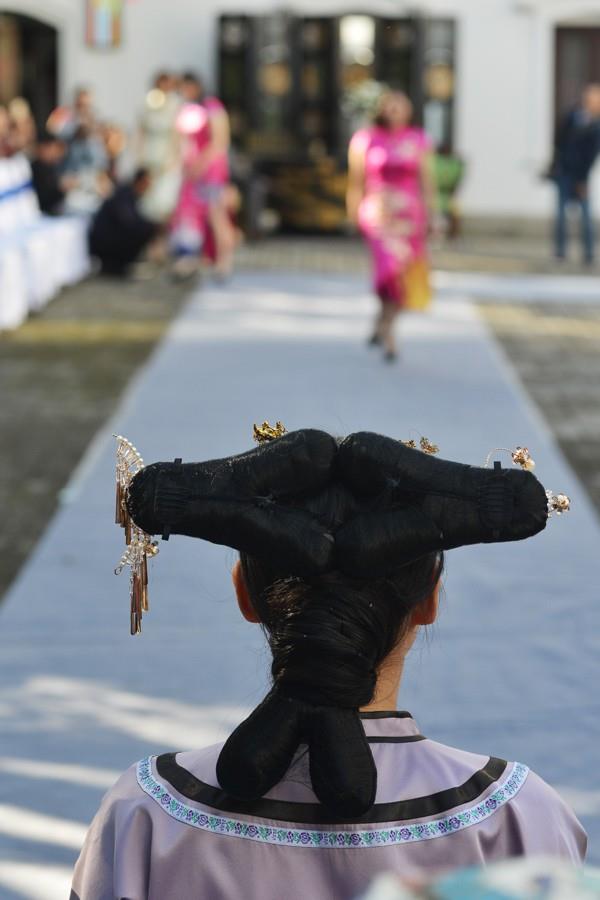 活动分为走秀展示和定点展示等,场景选择也特别讲究,选择在过去大户人家的私宅小院——微园中,其目的就是为了让模特们的旗袍与环境相吻合,更能体现旗袍美女的精制美。这些参加模特表演的精英队是经过多年培训排练和演出的,他们美丽的身影不仅时常出现在江浙一带重大的活动庆典仪式上,还代表宁波出访过东欧的展演,一场场的温婉灵动犹在眼前,秋水伊人的惊艳就在这一幅幅的走秀图中。