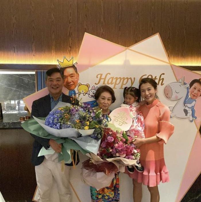曾文豪办60岁寿宴,怀抱两岁女儿与外孙女合照,四代同堂家庭美满