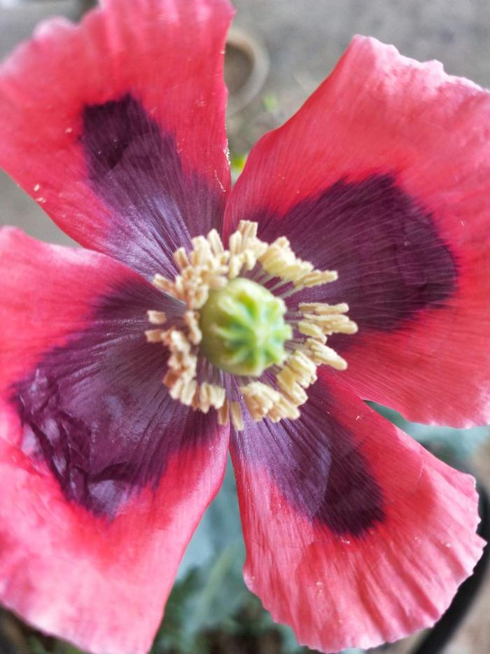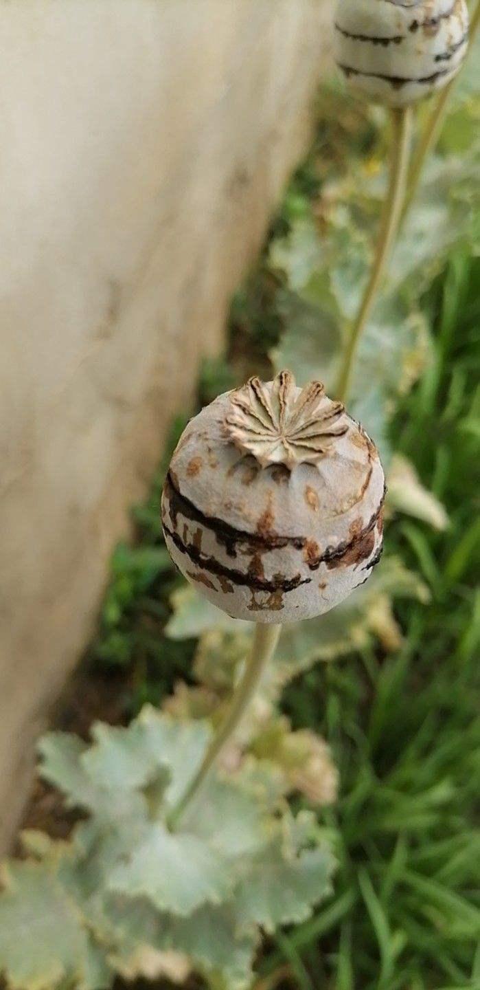 虞美人小巧,它的果实也很小巧,像是一个迷你型的莲蓬;而罂粟的果实相比之下就显得更大了,果实上端有一圈凹陷,像是一个束了口的布袋子。