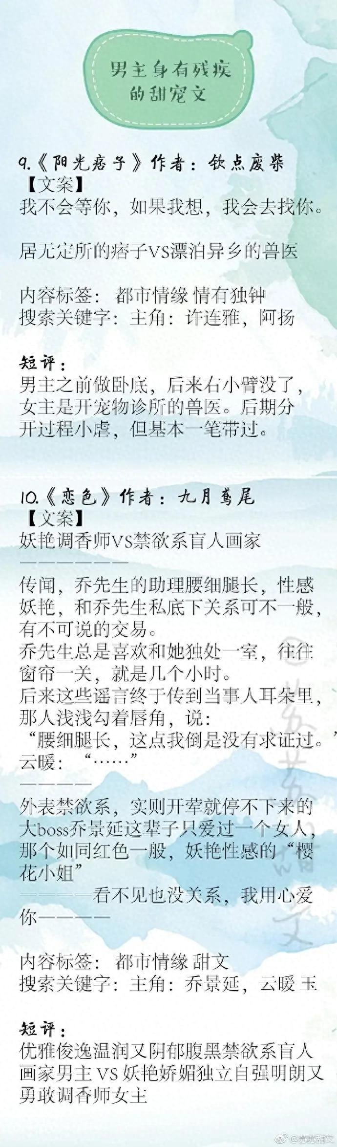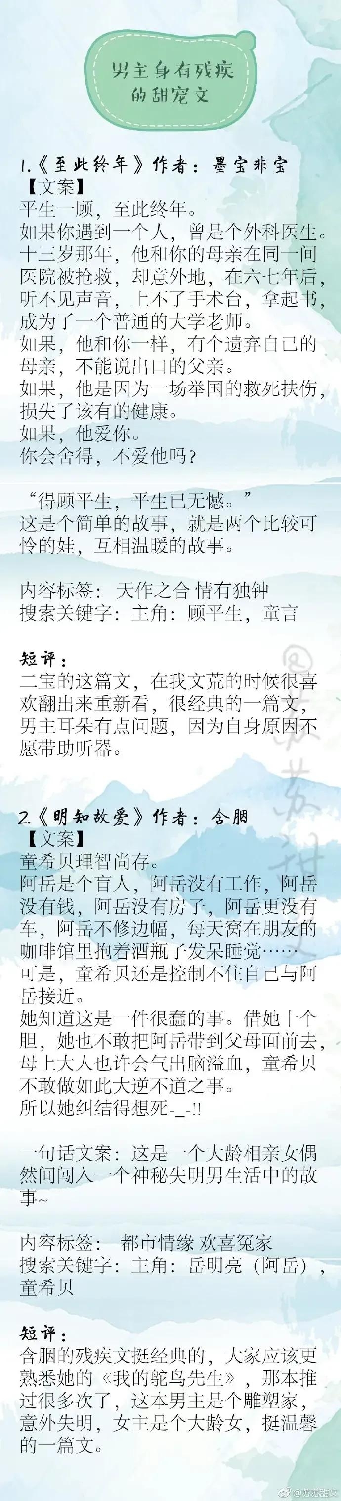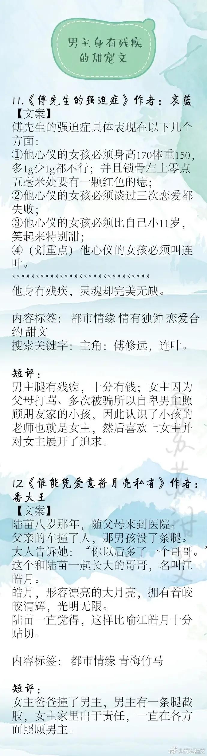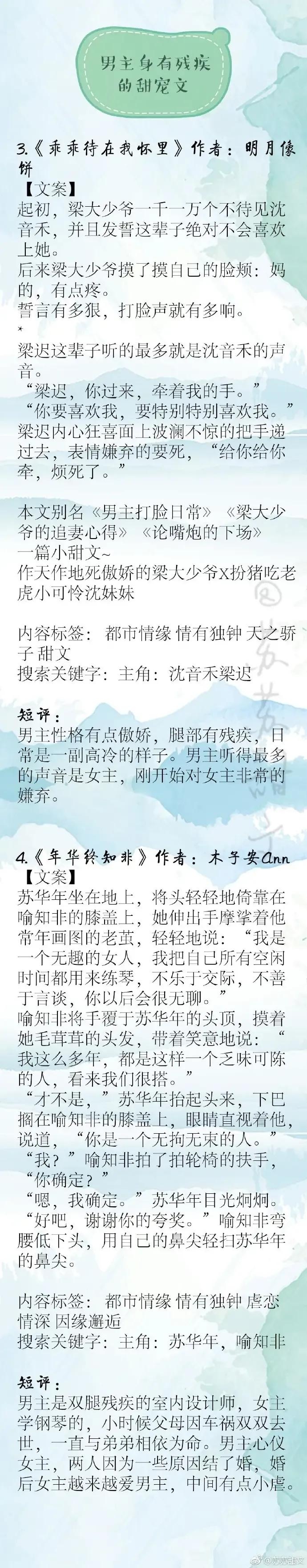 强推!十八本男主身有残疾系列文,本本精选,温暖治愈又泪点满满