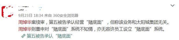 如今又有4名其集团内部员工承认“赌底面”行为,看来洗米华是286项罪名的审理将迎来新的进展。