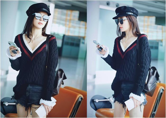 秦岚穿戴一件V领毛衣搭配一条牛仔短裤现身机场,修身的样式把较好的身姿完善的出现了出来,贝雷帽和太阳镜的装修也是超等的洋气,白净的肌肤在衣服的陪衬下发放出诱人的魅力,清雅的妆容也显得分外亮眼。