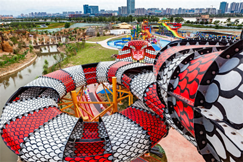 西安华夏文旅水世界以卡通基调构建的水上亲子乐园,犹如一个巨大的充气城堡,动感娱乐的滑水滑梯,色彩缤纷的童话世界,即惊险刺激,又舒适惬意,的确是家长孩子的游乐天堂。