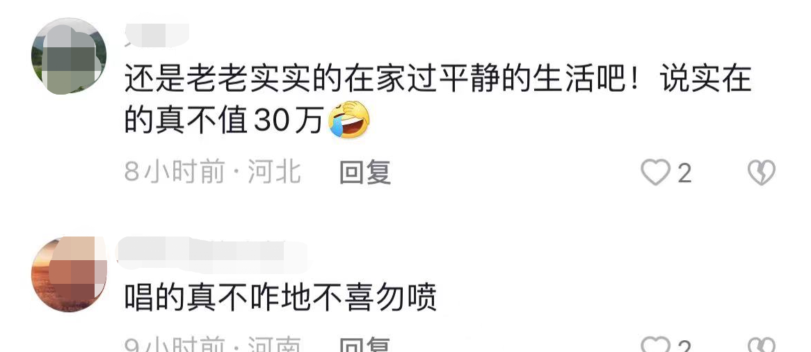 因为其唱功备受争议,也有网友现身表示:“这值30万吗?”