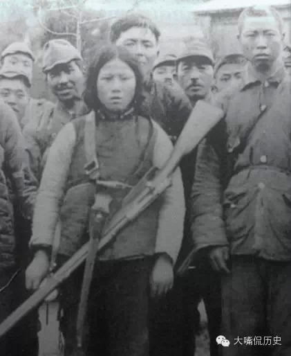 她叫姚英。日本人把一支长长的步枪挂在她身上,然后“愉快”地合影了。其意图就是为了羞辱她,意思是你不是要抗日吗,枪给你,看你像不像个扛枪的!