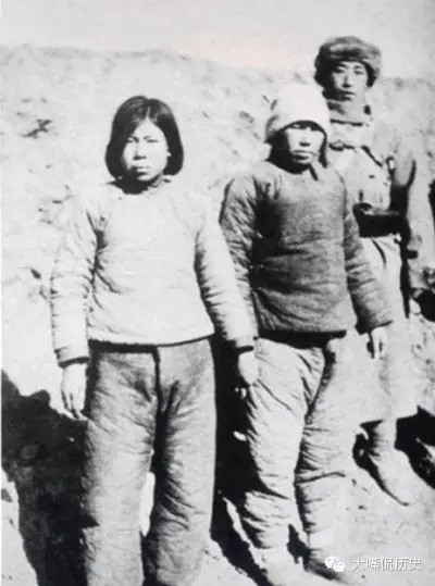 被日军俘虏的东北义勇军抗日英雄杨淑珍(女18岁,左) 杨威德(男,中间者)周紫珊(女,右)