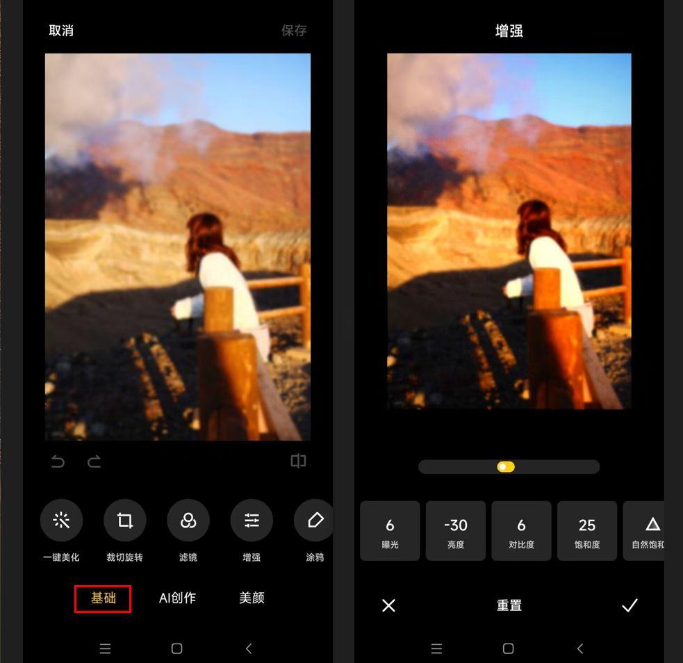 现在的手机相机已经相当智能化,很多手机都自带了照片修复功能。例如小米手机相册,它自带了一些基本的照片修复功能,我们可以通过调整亮度、对比度、饱和度等参数来优化照片。