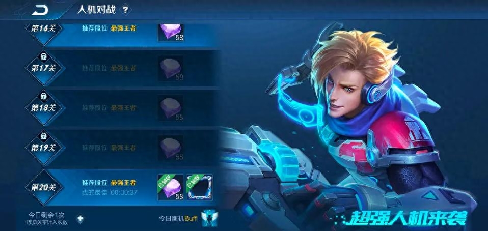 前面几个段位没什么难度,像平时打匹配打排位一样就行了,可以选择例如伽罗这种手长的,发育起来AI轻松点死的,重点讲一下后面的关卡。后面几个段位,AI战斗力越来越强,加成很高还有减伤,你按正常方法是打不过的,抱团必输,AI的操作精度比你好,还比你多了不少属性,别想着打架。