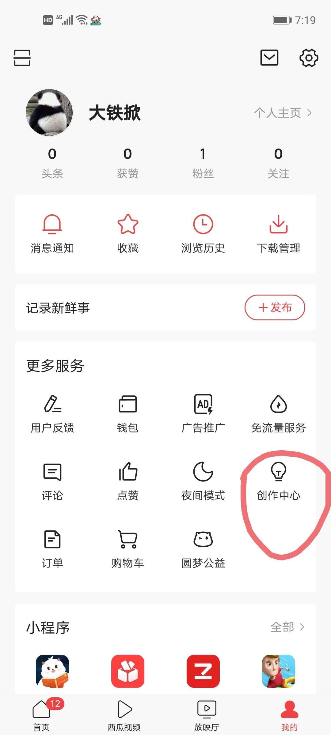 第六步,返回,进入【创作中心】