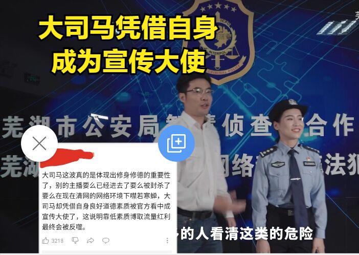 当然这位网友还举例到,别的主播在如今的大环境下要么被封杀,要么在现在清网的网络环境下噤若寒蝉,反观大司马却凭借自身良好道德素质,被当地的官方看中成宣传大使了,这也是大司马的品德优秀的好处。