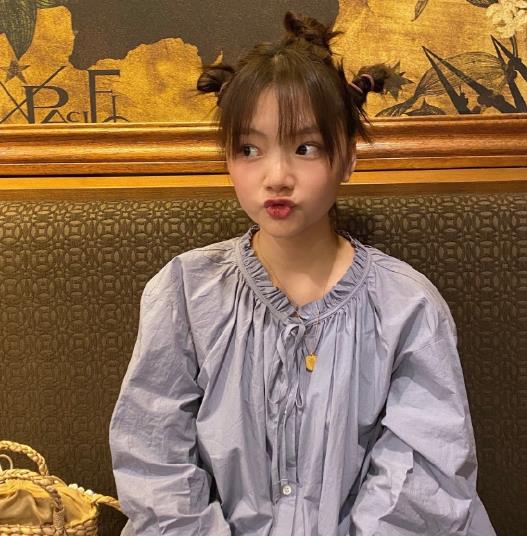 拥有刘海的任敏也是相当的可爱,刘海非常的减龄再配上她的哪吒头,宛若天线宝宝,跟她在剧中幼时的造型也十分相似,果然在可爱方面任敏是出了名的。而蓝色的裙子穿在她身上也显得非常的和谐,看上去真的非常减龄。