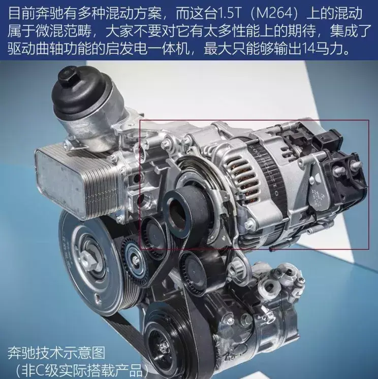 此次全新一代C260 L的48V电机为集成了驱动曲轴功能的启发电一体机